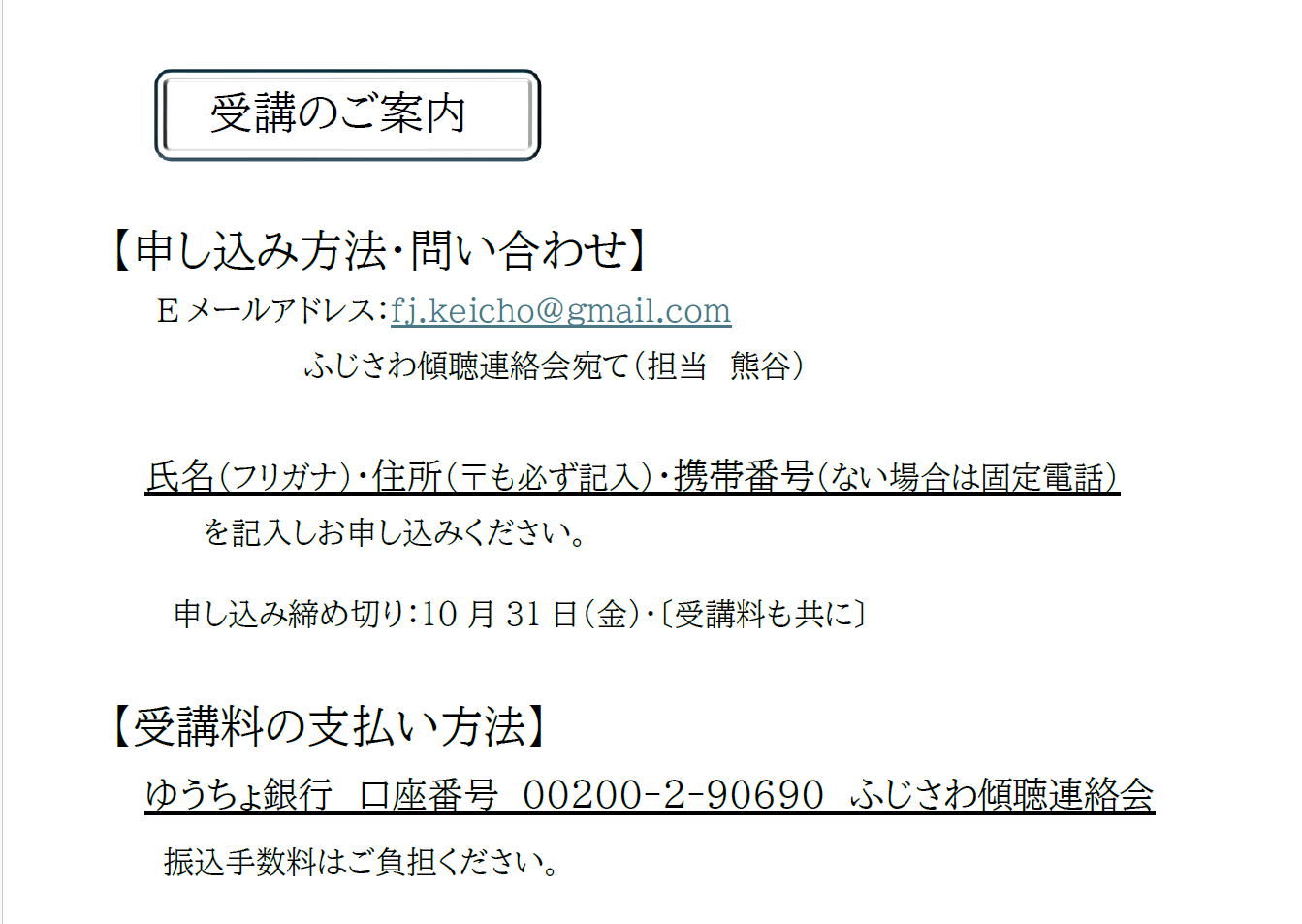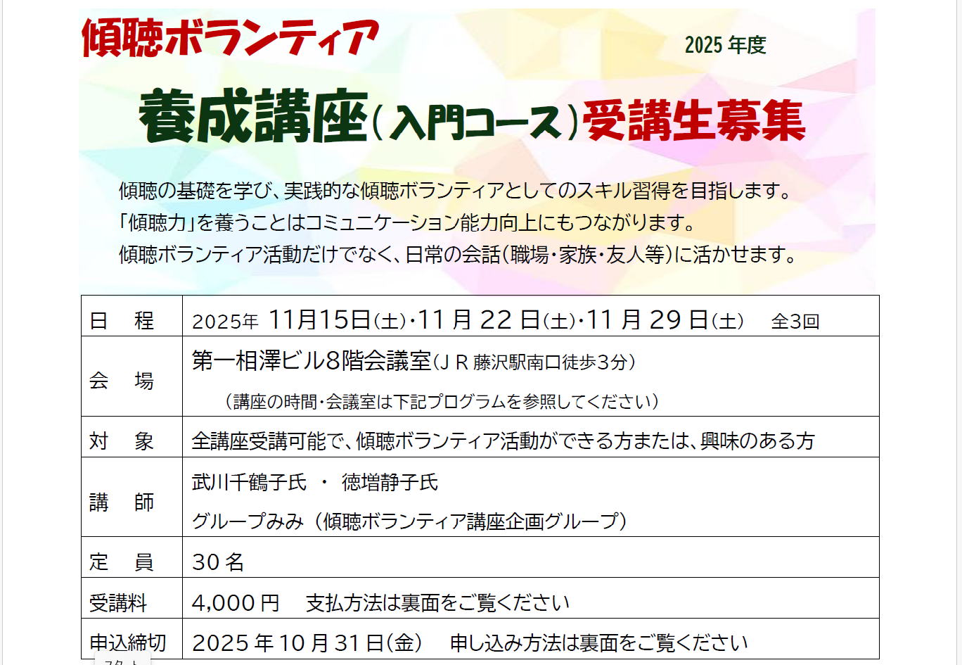 ![]() 受講を希望される皆様へ 傾聴の基礎を、様々な角度から学習し、ロールプレイを通して、実践的な力をつけて行きます。 2025年(令和7年度)の入門コースの参加者を募集中。